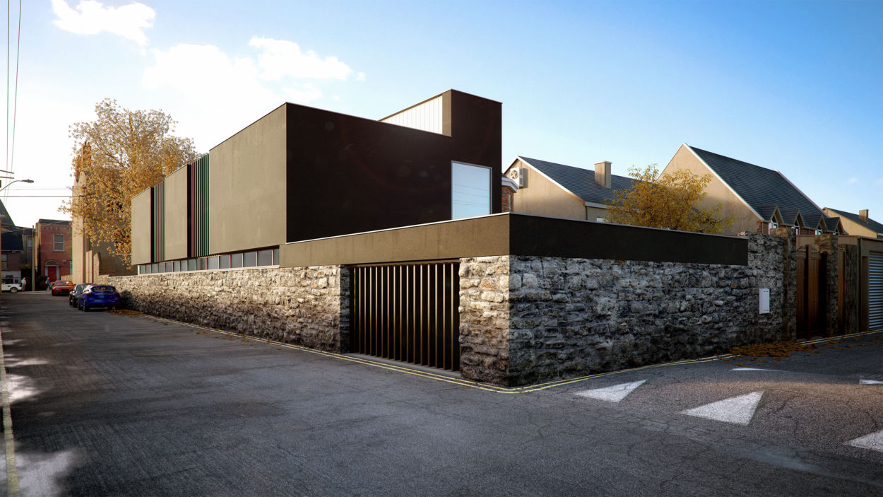 The integration of the original granite boundary wall, which runs along the side of the site, into the lower level of the building informs the passer-by of the original garden size of the period property and reduces the visual impact of the development on the laneway.