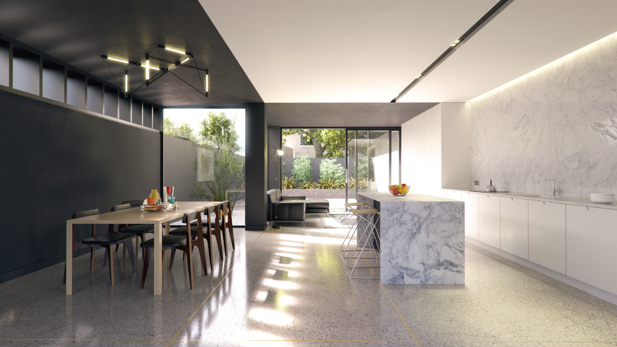 The North corner of the site is realigned to ease vehicular movement on the corner of the laneway, and the use of a linear handmade brick at the first-floor level grounds the two-story elements of the building. The insertion of a large recess at the mid-point of the side elevation, reduces the building mass along this edge, offering a moment of respite internally, as well as externally.