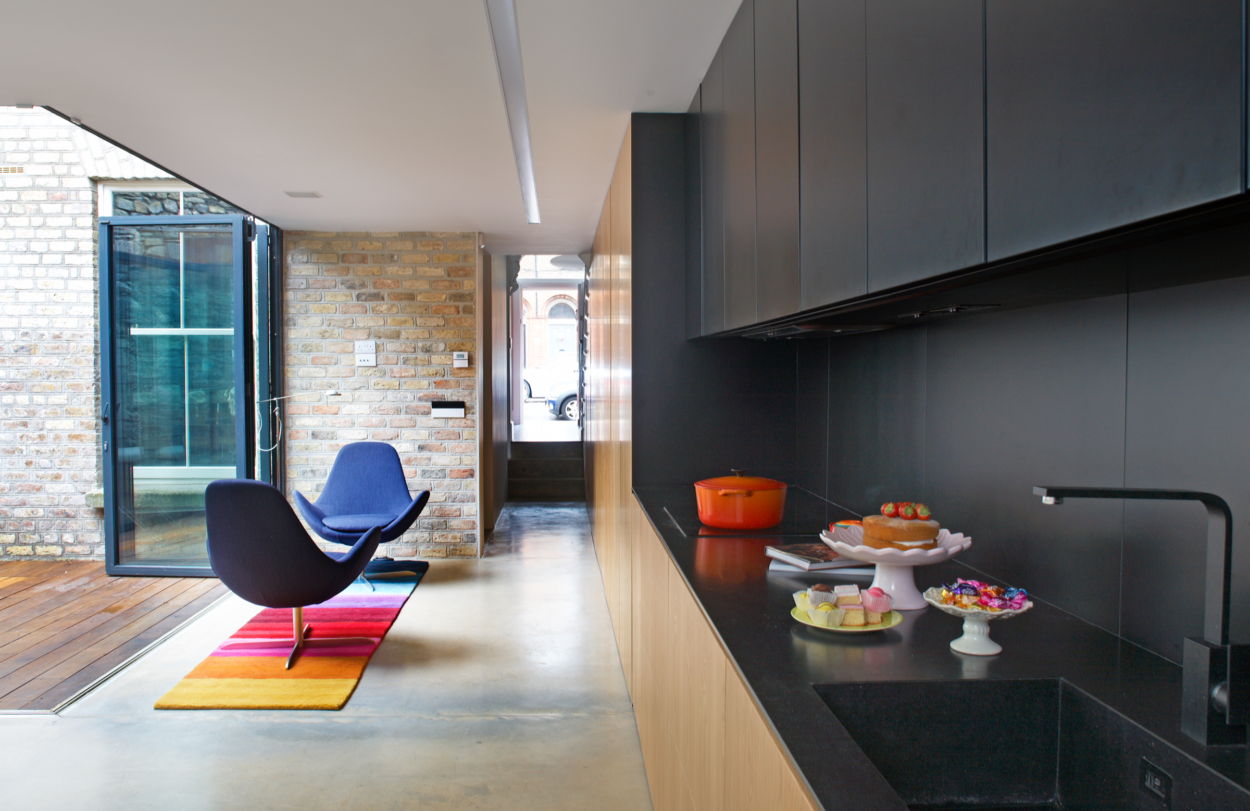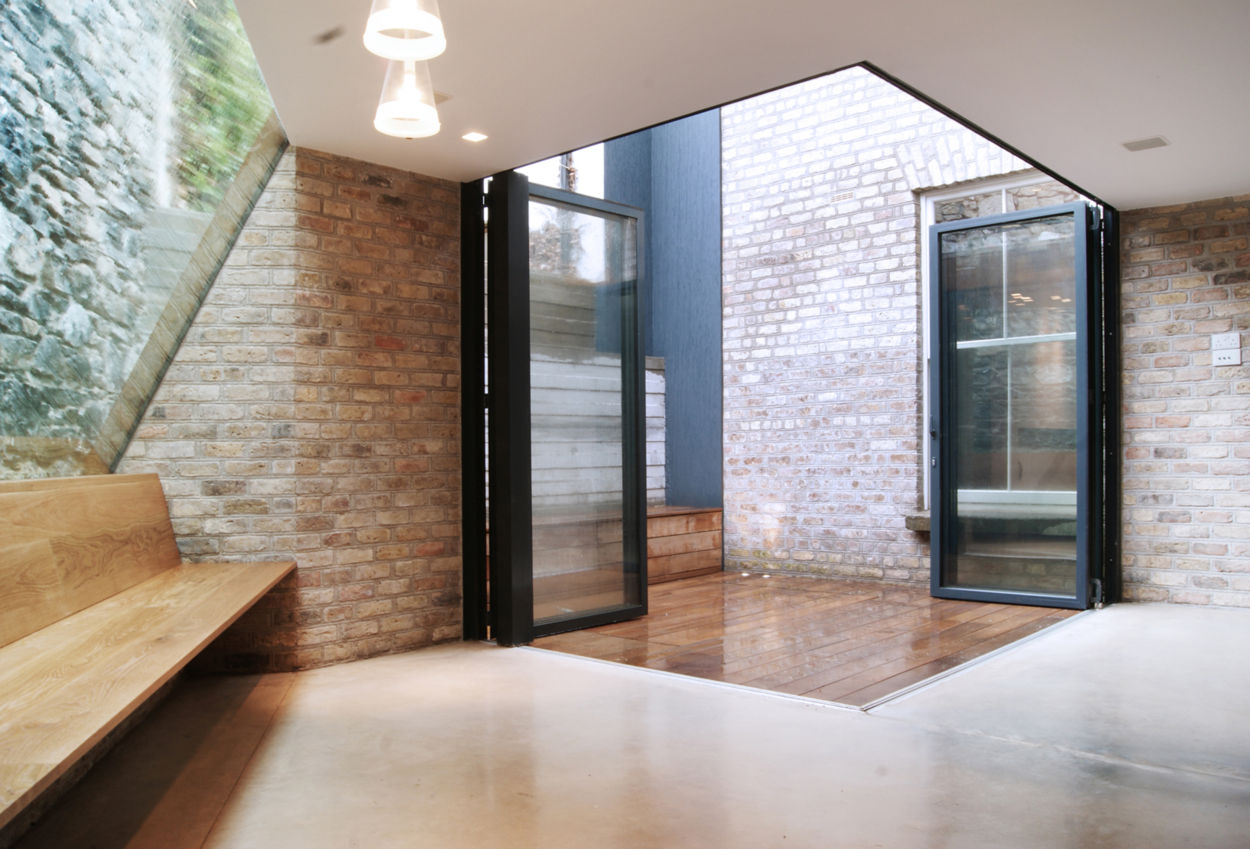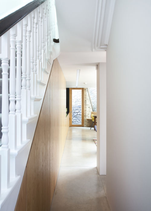 The entire ground floor level throughout was reduced in level and the angled stone boundary wall was a feature of the site that was brought into the heart of the house.